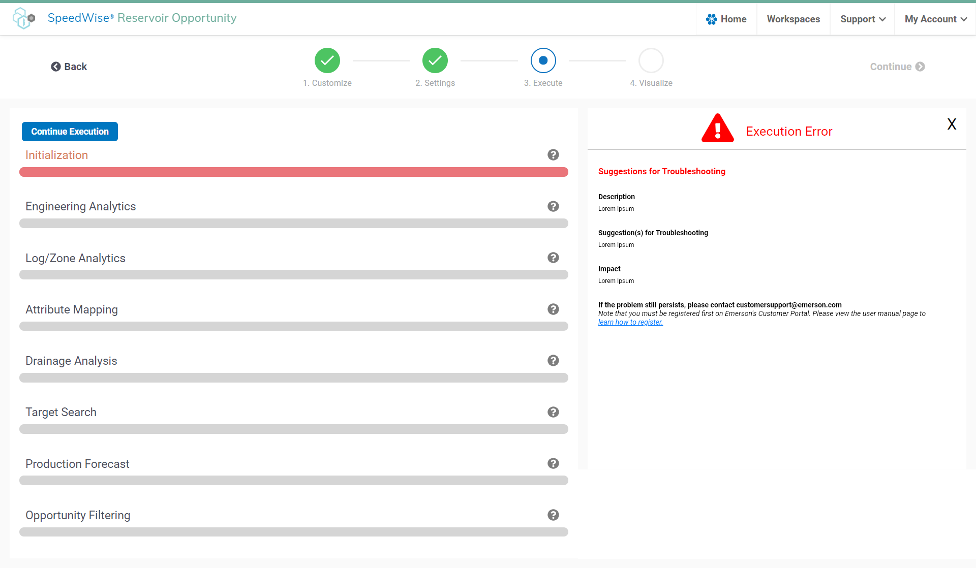 Description: The product SpeedWise® Reservoir Opportunity has an execution page which is used to validate the compatibility of the settings the user selected, and data the user has uploaded.