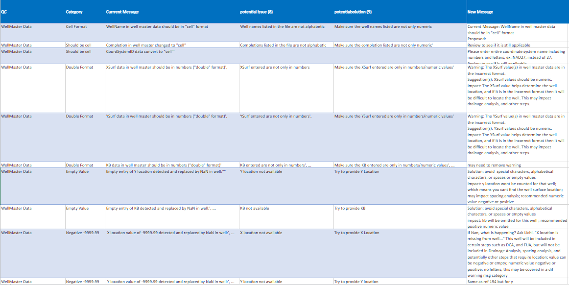 - The current error messages displayed were not documented on an excel sheet, and this process was very time consuming to do. They were embedded in layers of code.