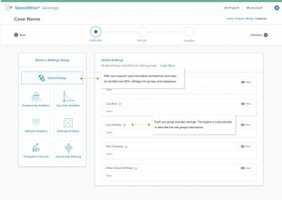 Based on the setting description it could be displayed as a drop-down, multi-select drop down, toggle, radio button, or table. The design also included question marks for each setting. The question mark would lead to a user manual which would further explain each setting in depth. This allows us to cover a wide range of oil and gas users from novice to experts.